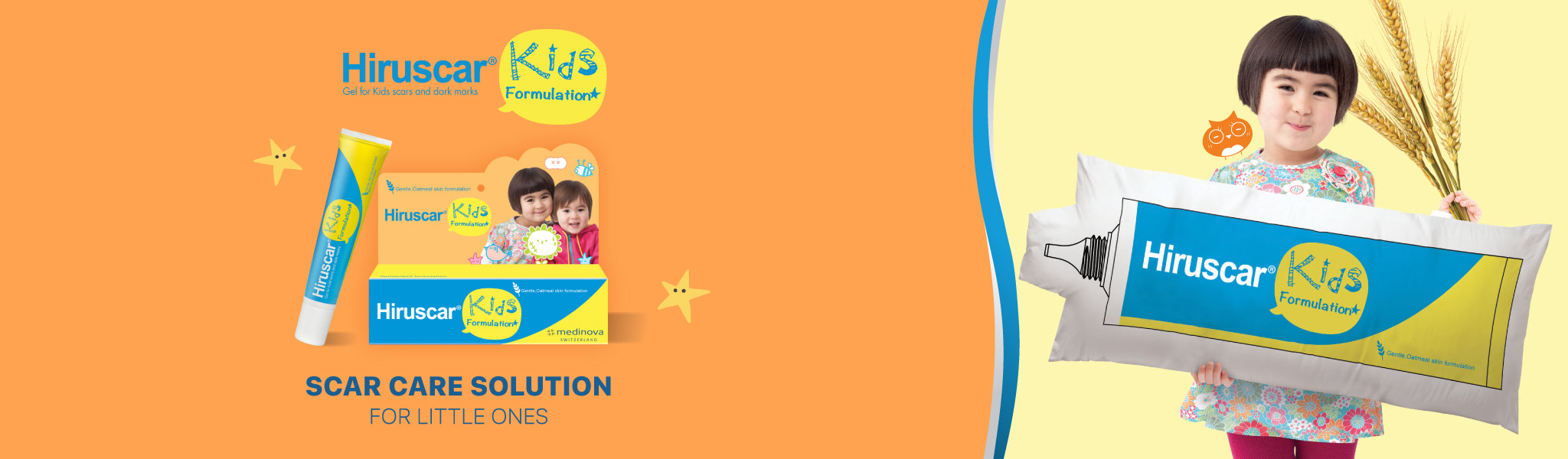 Hiruscar Kids is a topical gel for kids from Switzerland with 5 molecules as heroes to look after their childhood scars.