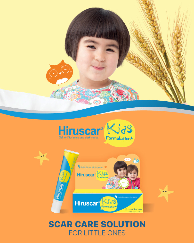 The simplest, safest and most convenient way to improve a scar is to use a gel that has been proven to be gentle, safe, non-allergenic and able to make the scar looks less noticeable and smoother. Hiruscar Kids gel can be absorbed to restore the skin to its natural softness and smoothness. It regulates the regeneration of collagen to smoothen and soften scar tissue, reduce red/dark marks, making the scar healing process comfortable.